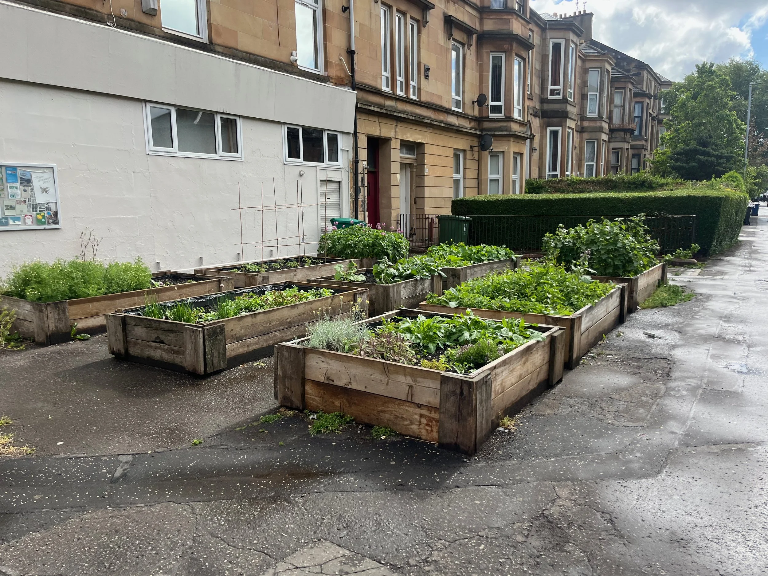 Through our network of raised beds, community gardens, and bike courier redistribution programme, we supply fresh fruit and vegetables to partner food banks and community food projects . Our projects turn underused urban spaces into vibrant growing sites—like the raised beds at Dixon Avenue and Langside Road—where residents can harvest herbs and salads freely and take part in workshops on seasonal growing, sustainable practices, and cooking with homegrown food.